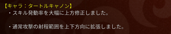 出ました!「大幅」の表記!今回は亀ですかー。城ドラで亀というと、やっぱり「Y●SUの亀!」が思い出されますねぇ(゚∀゚)アヒャ その亀のスキルといえば大砲ではなくてコウラスピンとかいうアレ。ダメージ軽減&相手を吹き飛ばすという特性はわかっちゃいるんですが、それが大幅上方したところでどう凄いのか正直わかりません。育成も攻撃だけフルにしてて防御とHPはスッカスカです( ᐛ ) アパー でもシマリスに優位だし、上手に使う人は使うんやろなぁ。