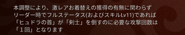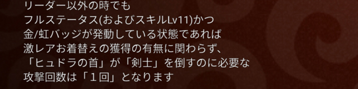 ヒュドラの首が剣士をワンパンで倒せるよう調整したものになります。内容はご覧の通り( ・ิω・ิ)