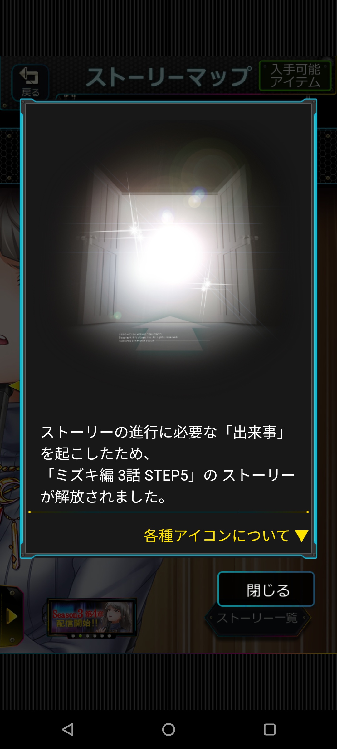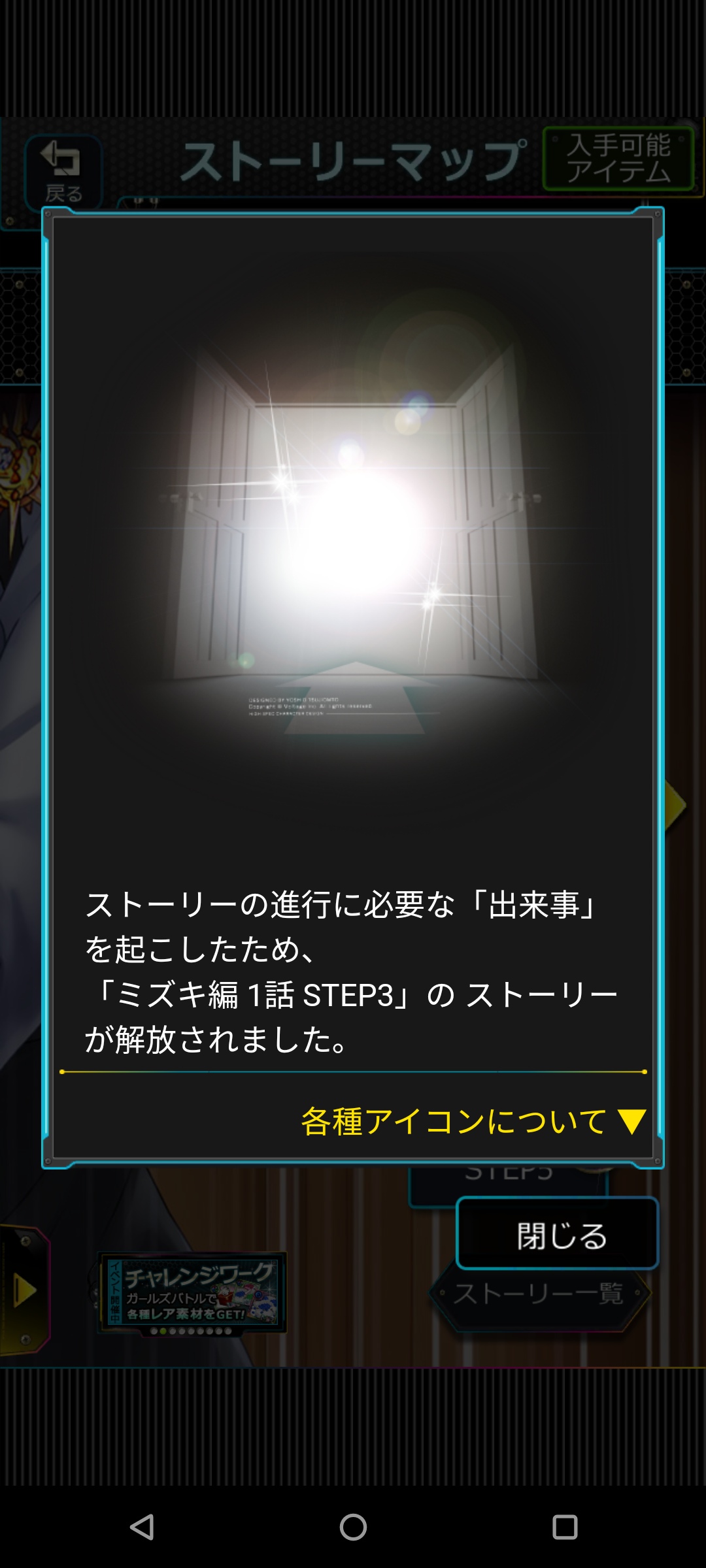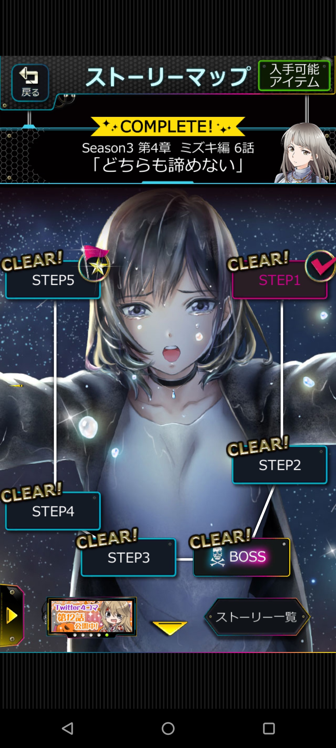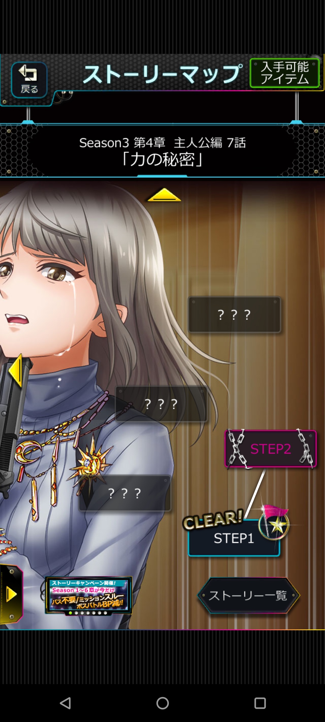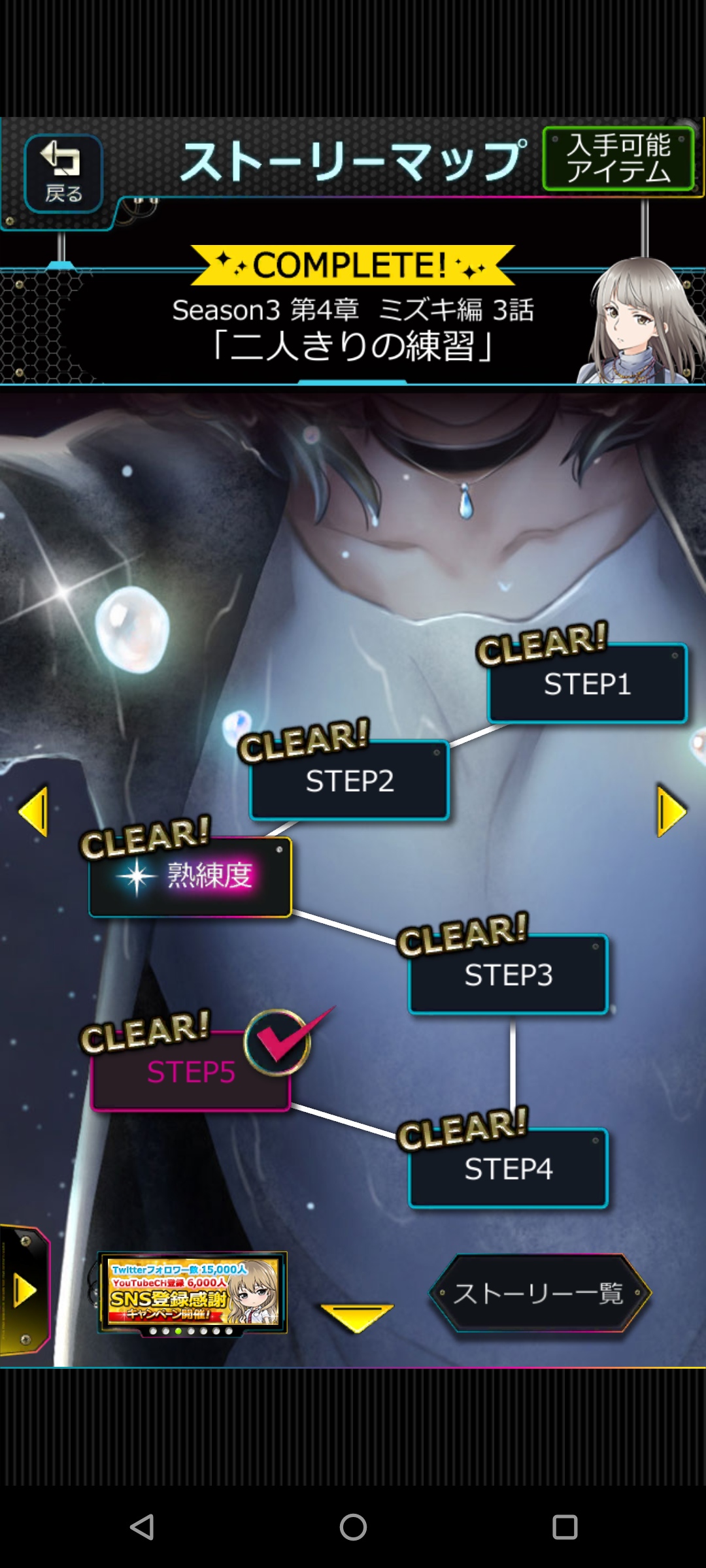 3話STEP5解放されたので進めます。2話STEP4の後からミズキ編が進んでいない方は進めちゃってください。5話STEP1まで一気に進めてOKです。