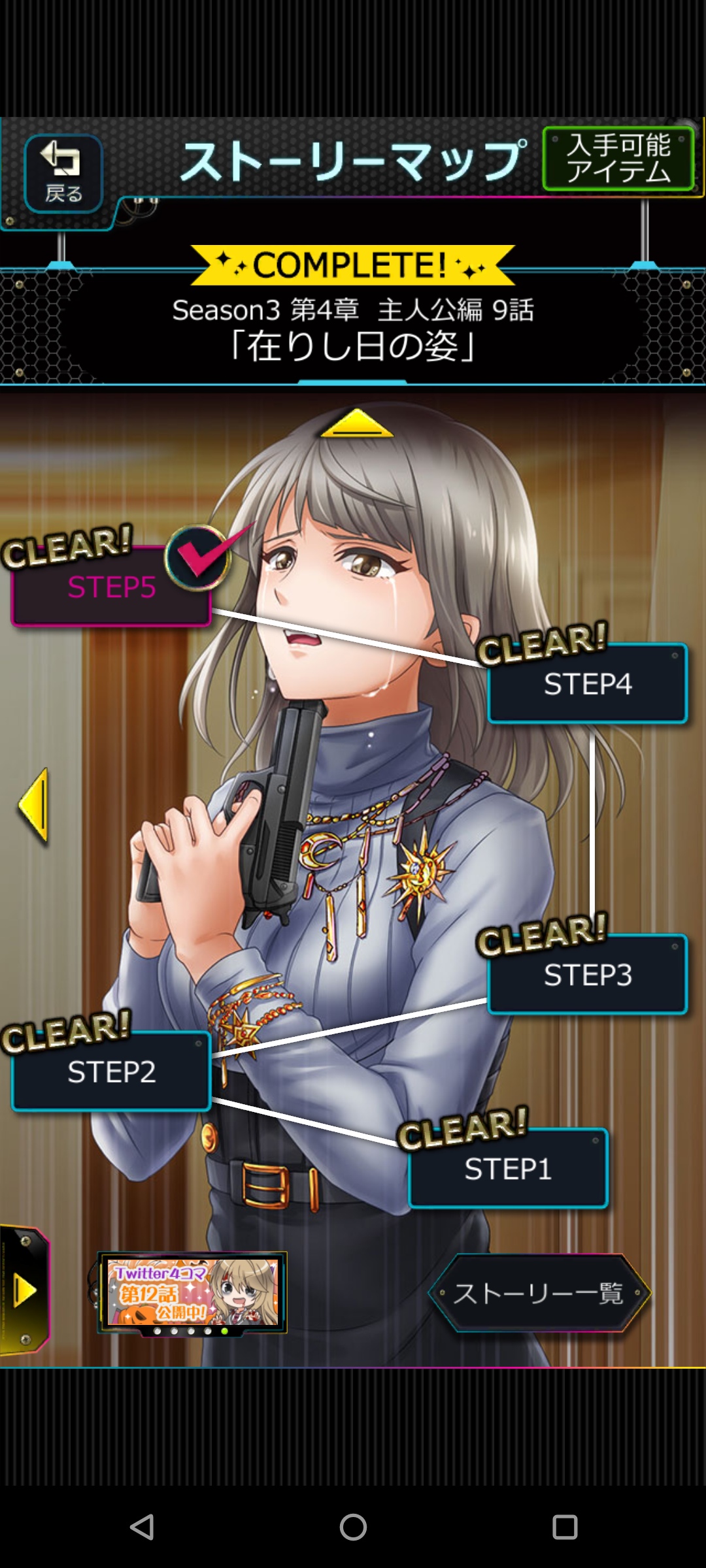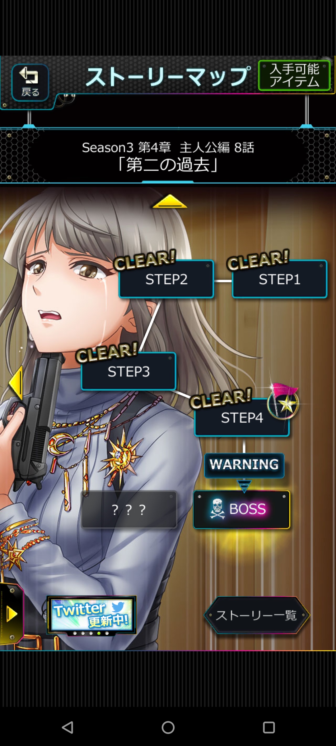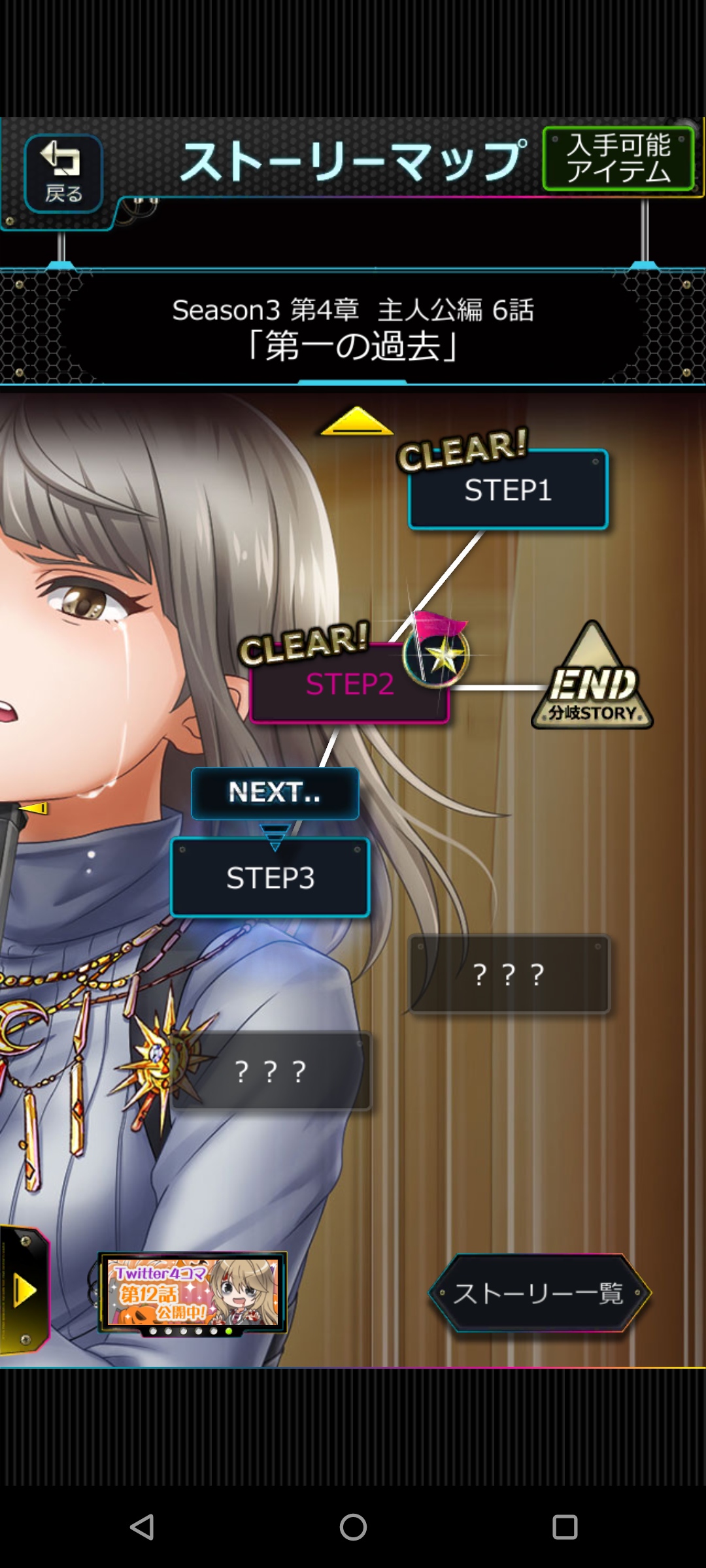 主人公編に移り、7話STEP2から8話STEP4まで終えると、出来事を起こしたためミズキ編6話STEP1のストーリーが解放されます。