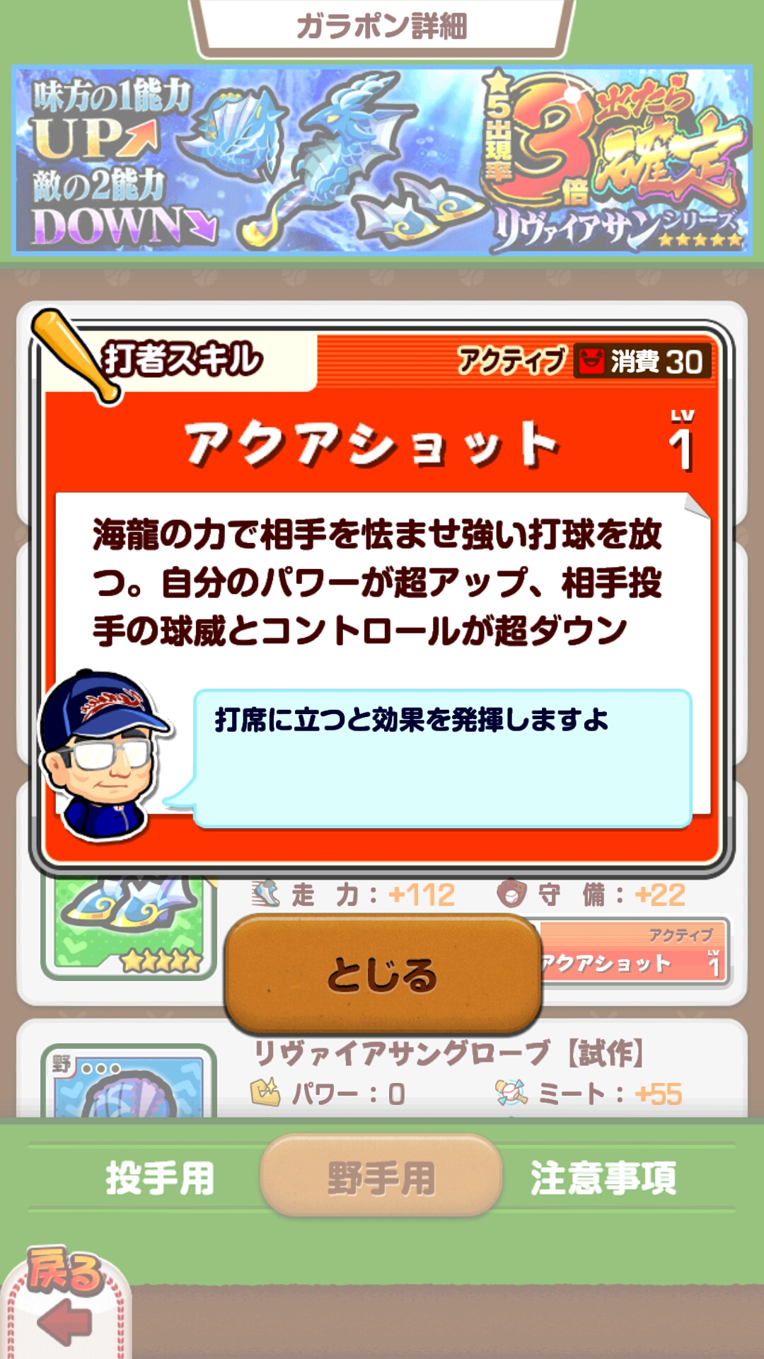 ただし、私は海龍バットをメインで使って打撃2冠をとったシーズンもあるので、使い方をしっかり見極められれば強い装備とも言えます。