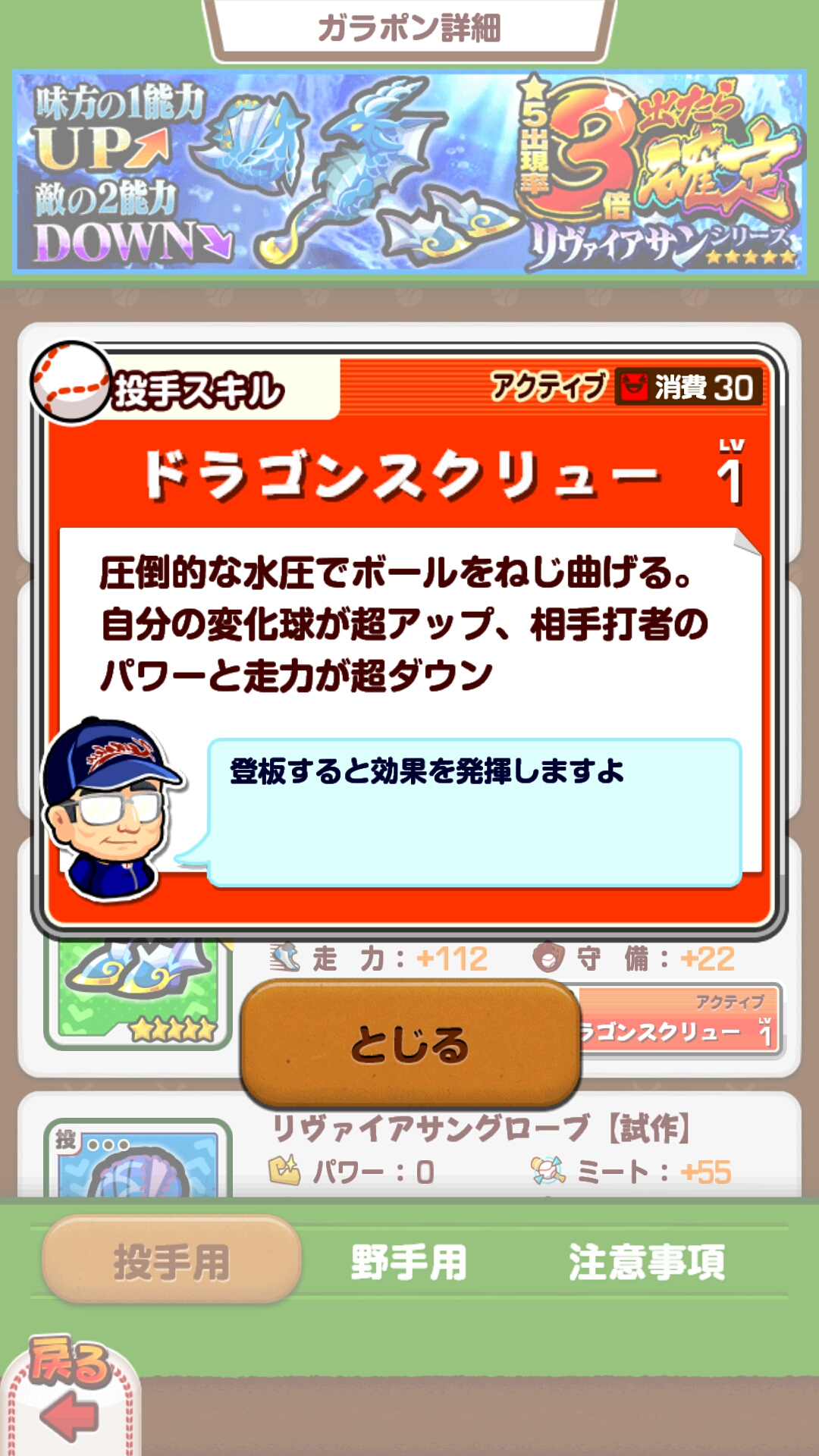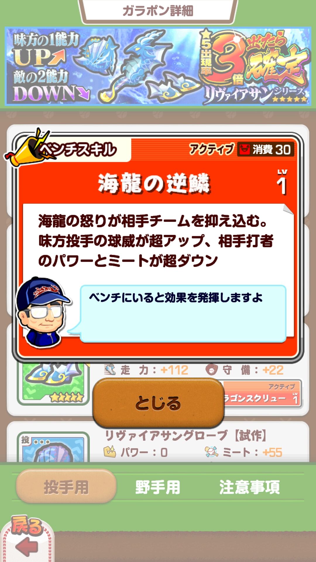 名前こそ投手スキルと異なりますが、中身は同じ。投手で強い印象を受けたスキルがベンチにも同様のものがあるとは恐ろしい。