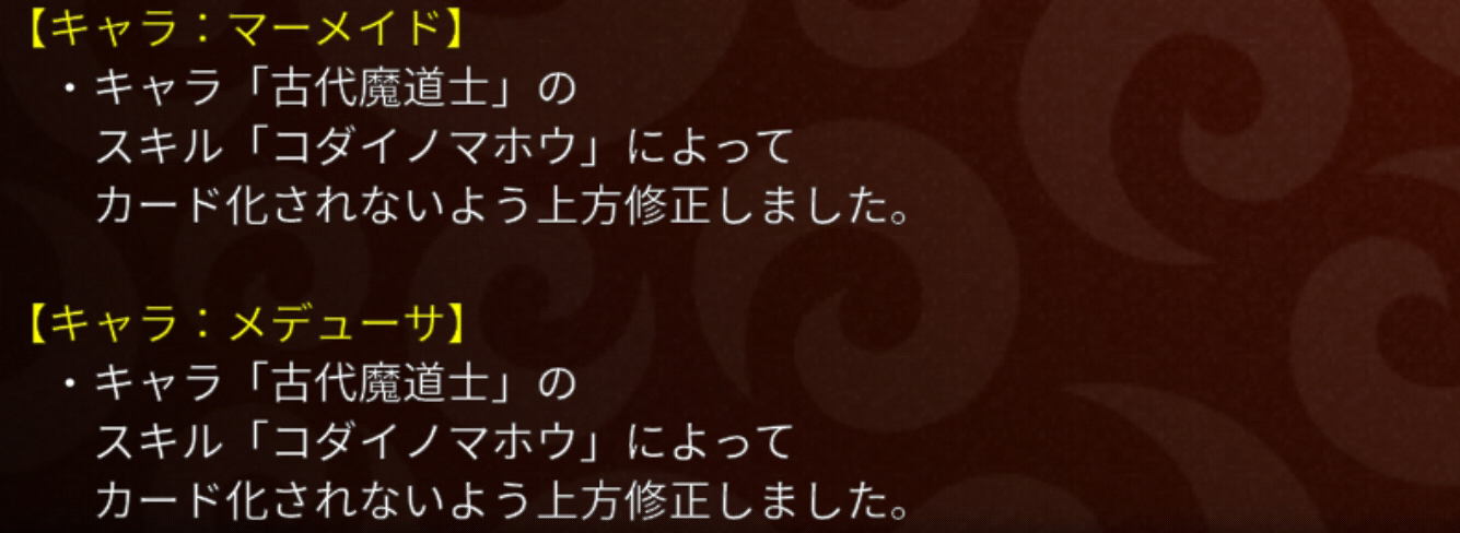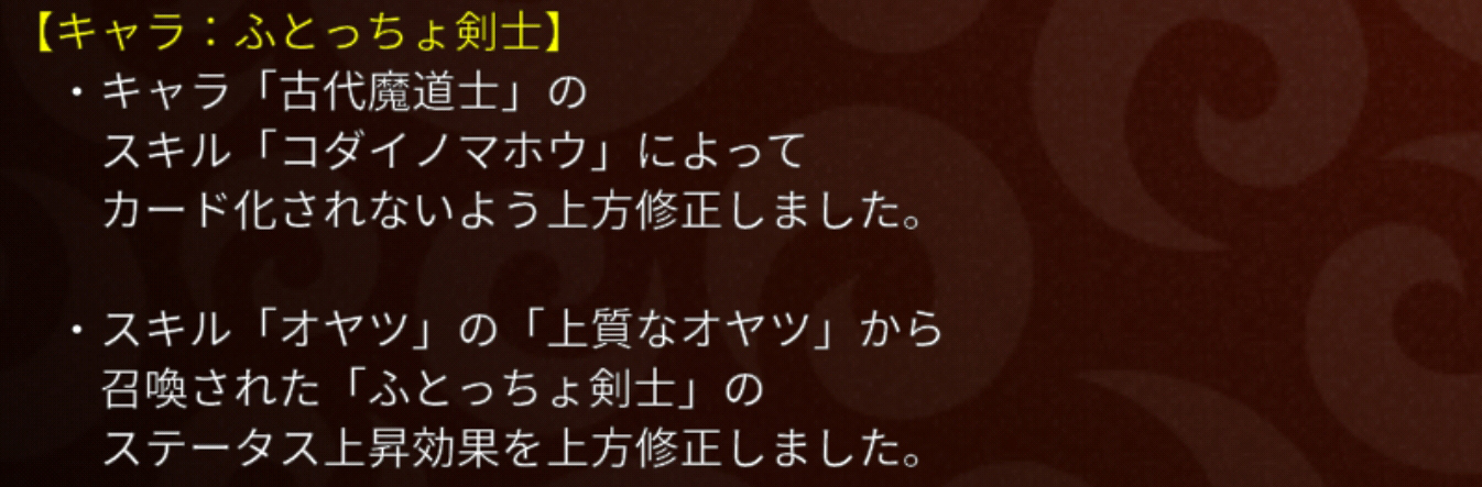 これデカい!ふとっちょがどうこうではなくて、古代魔導士でカード化されないキャラが増えたことがデカい!まぁ~古代魔導士を育てていない側からしたら鬱陶しいこと極まりなかったからですねw ついでにステータス上昇効果も上方となっていますが、これも地味に厄介。例えば、以前金バッジのふとっちょに苦戦したこともあるので、こういった上方はやめてほしいですw