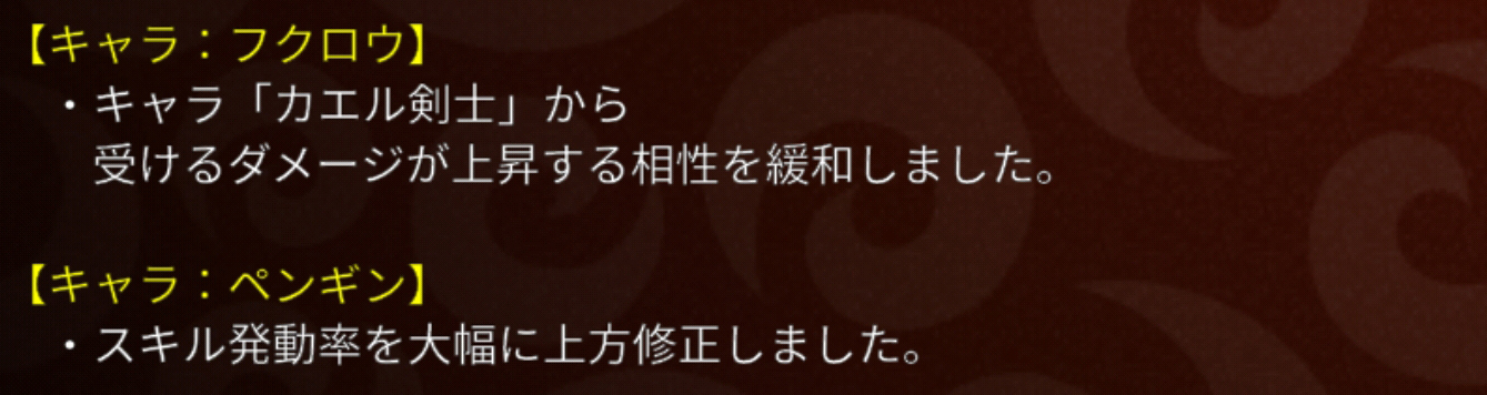 これもそこまでコメントしたいことはありません。ペンギンのスキルって回って移動するアレですよね?別に上方しなくてもいい気が・・・。