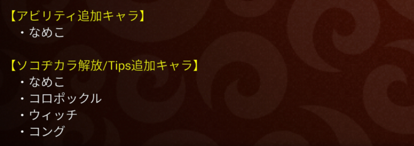 以上のキャラがアビリティ追加またはソコヂカラ解放されておりまーす。