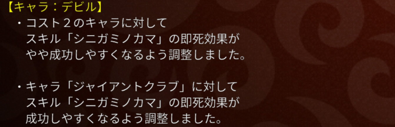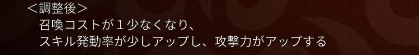 個人的には強キャラキラーだと思ってるベビー。今回はスケルトンへの耐性も少しつきました。さらに、スキル発動関連の時間短縮も2種入り、使いやすさを取り戻してきましたね。これほど上方するということは、それほど使用率が高くないんでしょうねぇ。まぁたしかに攻撃力が低かったり、召喚数が少なかったりと欠点もありますからね。これで使用者が増えるのだとしたら、同じく今回上方修正されたデビルで対応するつもりです。