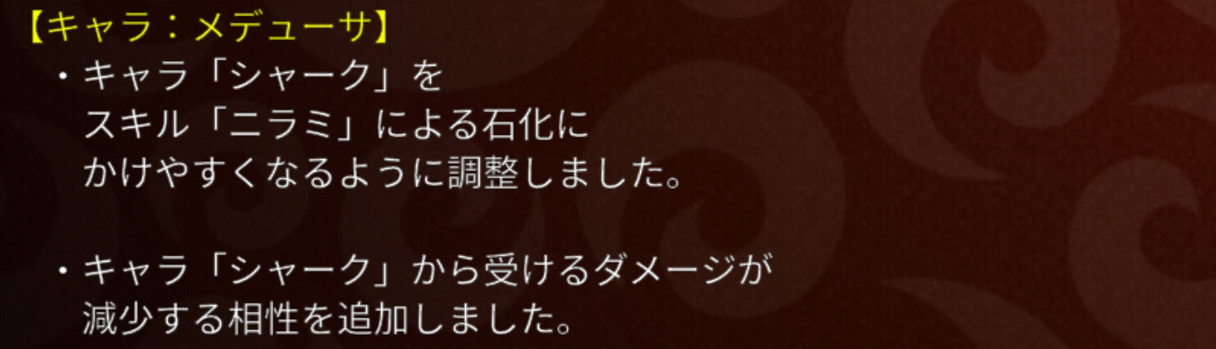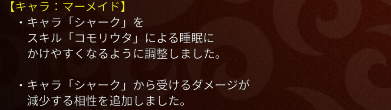 今回下方修正の入った中型迎撃といえばカニが挙げられますが、その一方でシャークもまた対策キャラがどっと増やされました。おじハウ・マーメイド・メデューサの3種。なんだこれ!?っていうくらいぶっ壊れキャラだったリリース当初が懐かしいですね。攻撃範囲が全体から単体に下方修正されたり、不利な相性変更がいくつか追加されてもなお強キャラ扱いを維持してきたなかでの今回のさらなる下方。もうさすがにシャークさんしんどいんじゃないですかね?w とは言っても、私は使い続けるんですがw