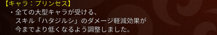 アビリティが実装されて密かに強キャラだったプリンセスが下方修正。個人的には、「さぁこれからアビリティ付けるぞ」って思っていたところなのに迷惑な修正ですよ、まったく。。。