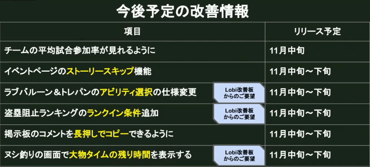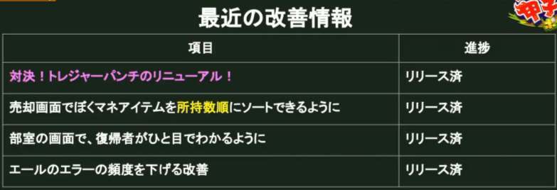 最近の改善情報